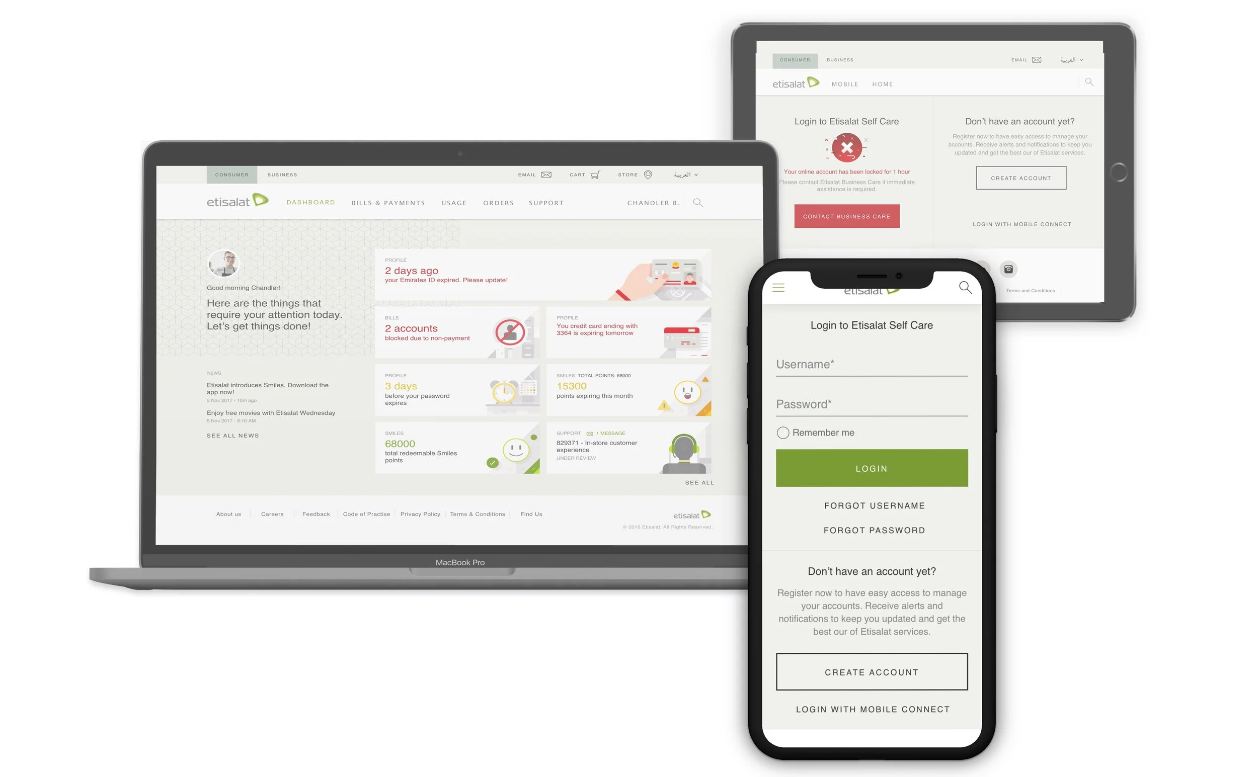Etisalat is the largest telecommunication corporation in the GCC. Serving both consumer & business markets, Etisalat serves 11.6 million customers and over 300,000 small, medium, and large enterprises and government customers in the UAE. As part of their organizational transformation project, the customer self-care portal was to be redesigned and optimized to meet the newly defined brand guidelines and design principles.